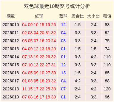 双色球2026019期开奖,本期奖号:红球07、08、16、17、18、30,蓝球01。其中红球奖号质合比为2:4,大小比为3:3,和值为96。